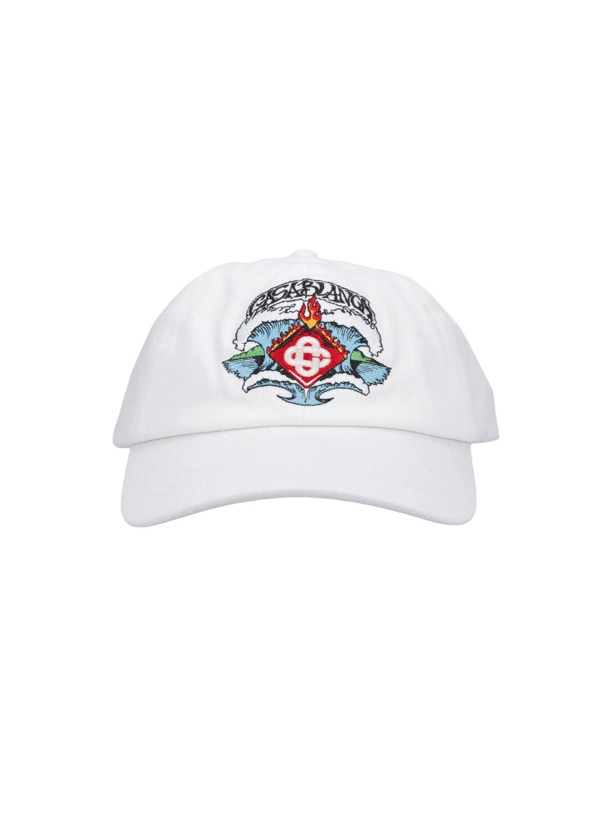 CASABLANCA LOGO BASEBALL CAP IN WHITE COTTON WITH CURVED VISOR, MULTICOLOR LOGO EMBROIDERY ON THE FRONT, ADJUSTABLE BUCKLE STRAP AT THE BACK. PRODUCT INFO PRODUCT CODE A SP26 HAT 002 04 EX BCWAVES COMPOSITION: 100% COTTON MADE IN: CHINA