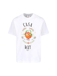 CASABLANCA "CASA WAY ORANGE MASCOT" T-SHIRT IN WHITE ORGANIC COTTON WITH CREW NECK, MULTICOLOR PRINT ON THE FRONT, SHORT SLEEVES, STRAIGHT HEM. PRODUCT INFO PRODUCT CODE M AW25 JTS 001 02ORANGE MASCOT COMPOSITION: 100% ORGANIC COTTON SIZE AND FIT: SOFT FIT MADE IN: PORTUGAL - PRODUCT MADE FROM ORGANIC MATERIALS
