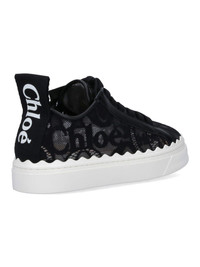 CHLOÉ 'LAUREN' SNEAKERS, LACE UPPER, BLACK COLOUR, ROUND TOE, LACE-UP CLOSURE, SIDE LETTERING LOGO, WHITE JACQUARD LOGO RIBBON ON THE BACK, SOLE WITH WAVY DETAILS. PRODUCT INFO PRODUCT CODE C19U108D2001 - 100% COTTON - DETAILS: 100% LEATHER - SOLE: 100% RUBBER - MADE IN PORTUGAL - C19U108D2-001 MADE IN: PORTUGAL