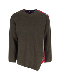 COMME DES GARCONS HOMME PLUS WOOL SWEATER, GREEN ON ONE SIDE, MULTICOLOR CHECK PATTERN ON THE OTHER, CREW NECK, LONG SLEEVES, ASYMMETRICAL HEM. PRODUCT INFO PRODUCT CODE PP N006 W251 COMPOSITION: 100% WOOL SIZE AND FIT: REGULAR FIT MADE IN: JAPAN