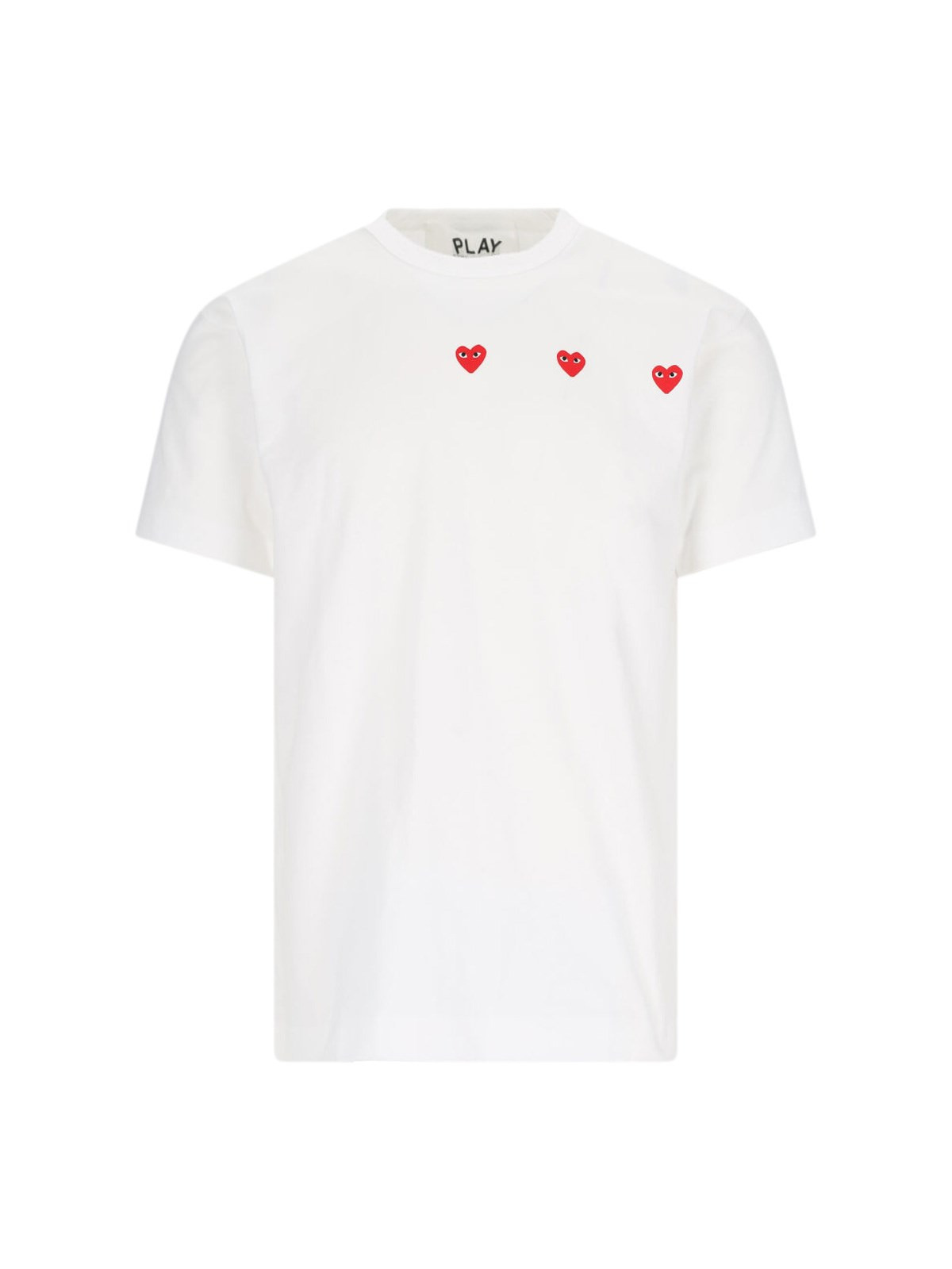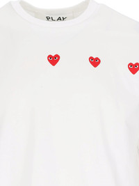 COMME DES GARCONS PLAY LOGO T-SHIRT IN WHITE COTTON WITH CREWNECK, SHORT SLEEVES, RED LOGO PRINT ON THE CHEST, AND STRAIGHT HEM. PRODUCT INFO PRODUCT CODE AX T337 0513 COMPOSITION: 100% COTTON SIZE AND FIT: REGULAR FIT MADE IN: JAPAN