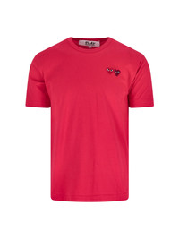 COMME DES GARCONS PLAY RED COTTON LOGO T-SHIRT WITH CREW NECK, SHORT SLEEVES, FRONT LOGO EMBROIDERY, RIBBED TRIMS, STRAIGHT HEM. PRODUCT INFO PRODUCT CODE AX T226 0515 COMPOSITION: 100% COTTON SIZE AND FIT: REGULAR FIT MADE IN: JAPAN