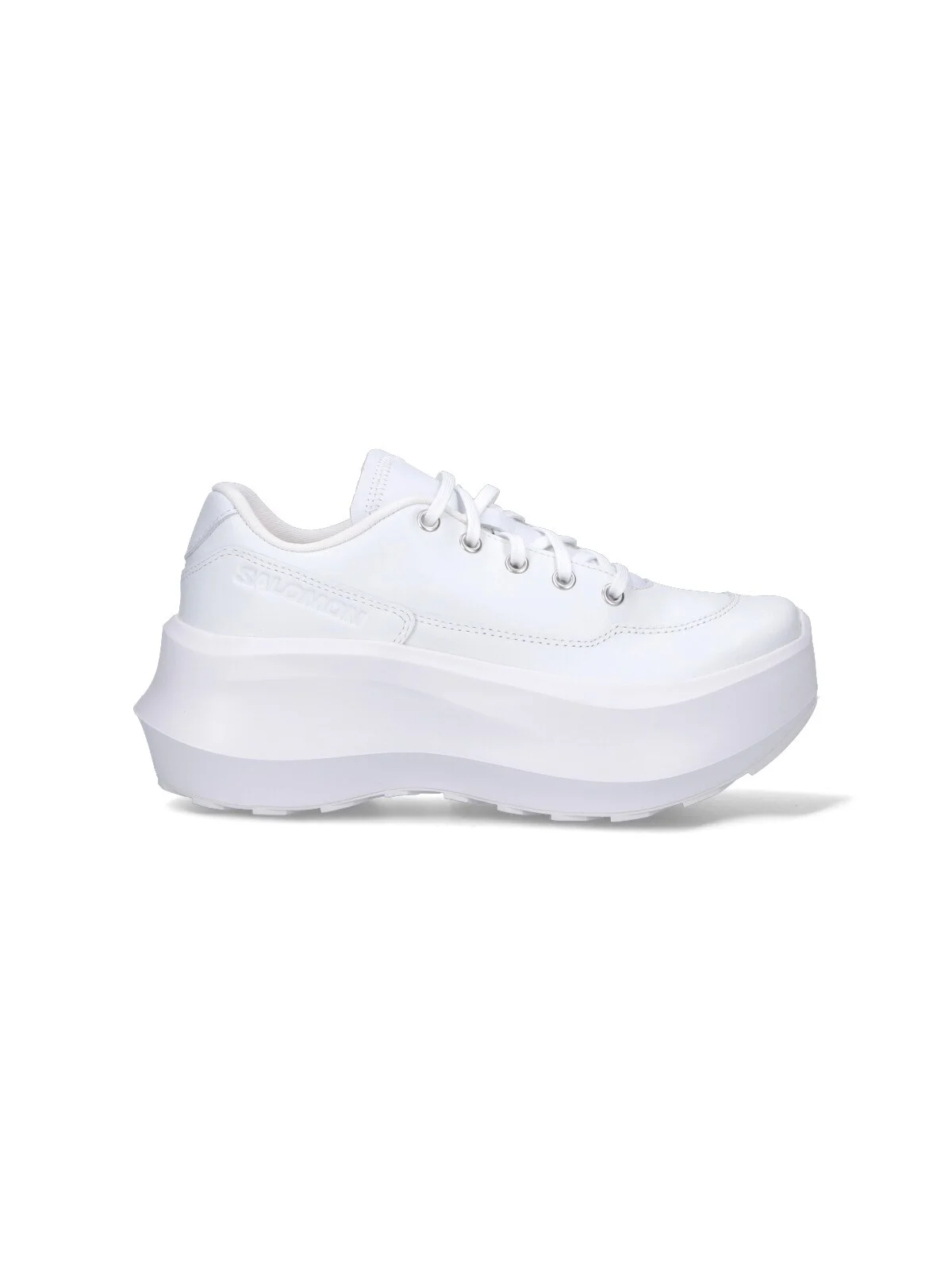 COMME DES GARCONS X SALOMON SR811 SNEAKERS IN WHITE CALF LEATHER WITH ROUND TOE, LACES, EMBOSSED LOGO DETAIL ON THE SIDE, TONE-ON-TONE FINISH, AND TONE-ON-TONE RUBBER SOLE. PRODUCT INFO PRODUCT CODE GP K104 W252 COMPOSITION: 100% CALF LEATHER MADE IN: CHINA - SOLE: 100% RUBBER