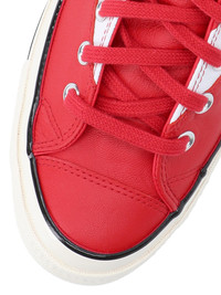 CONVERSE X COCA-COLA CHUCK 70 SNEAKERS IN RED LEATHER WITH ROUND TOE, TONE-ON-TONE LACES, CONTRASTING DETAILS, ROUND SIDE LOGO PATCH, AND RUBBER SOLE. PRODUCT INFO PRODUCT CODE A17888CRACING RED EGRET BLACK COMPOSITION: 100% LEATHER - SOLE: 100% RUBBER