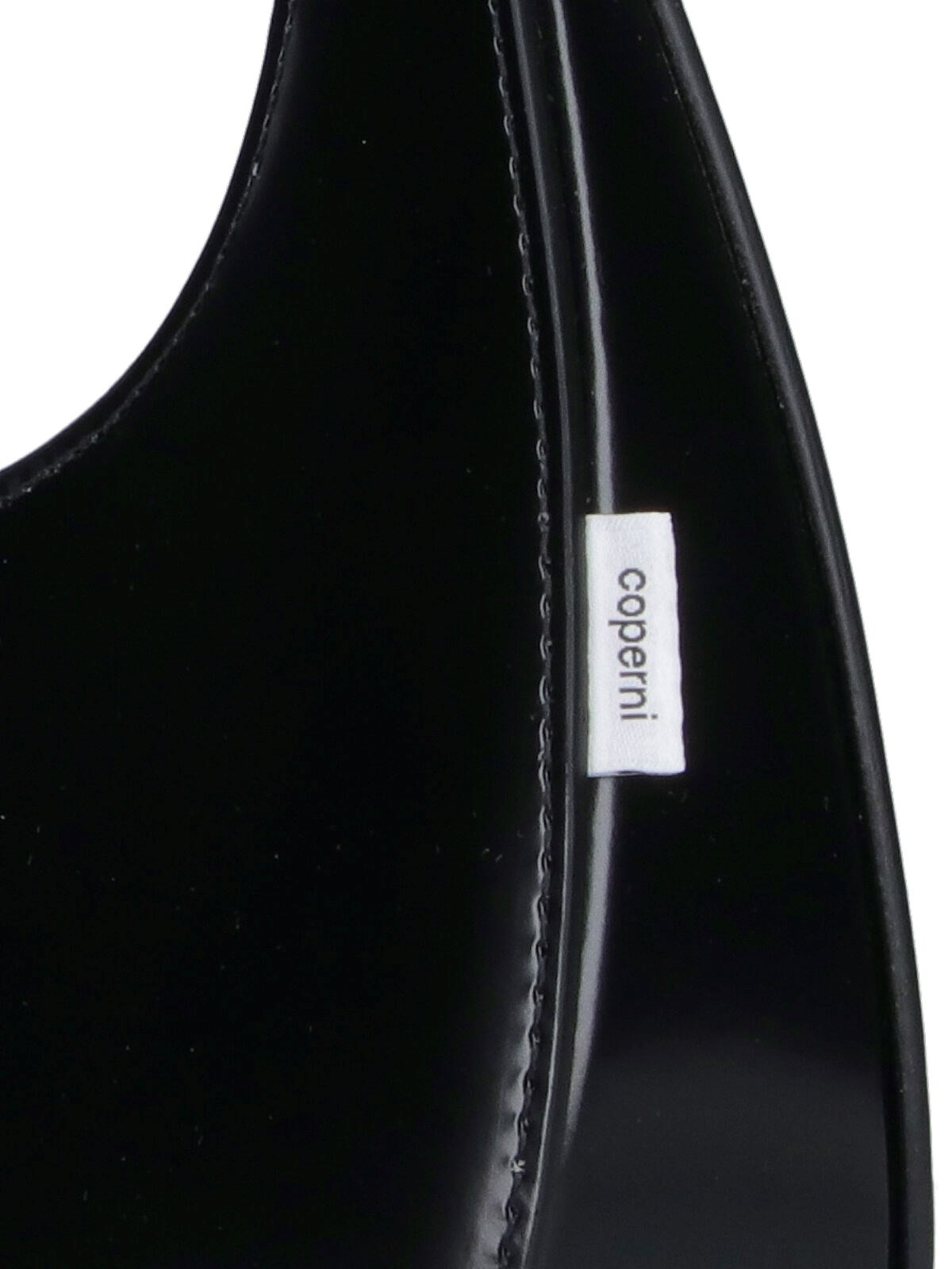 COPERNI 'BAGUETTE SWIPE' BAG IN BLACK LEATHER BOX LEATHER WITH TOP HANDLE, DOUBLE ZIP CLOSURE, SILVER LOGO PRINT ON THE FRONT, SIDE LOGO PATCH, MAIN INNER COMPARTMENT. PRODUCT INFO PRODUCT CODE COPBA116F6045BLK COMPOSITION: 100% CALF LEATHER SIZE AND FIT: H 26 X W 26 X D 5.5 CM MADE IN: ITALY MADE IN: ITALY