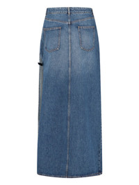 COPERNI "GARDER" MAXI SKIRT IN LIGHT BLUE DENIM WITH MID WAIST, BELT LOOPS, BUTTON AND ZIP CLOSURE, FIVE-POCKET DESIGN, MAXI SIDE SPLIT, SIDE GARTER STRAP DETAIL, STRAIGHT HEM. PRODUCT INFO PRODUCT CODE COPJ101F2014BLU COMPOSITION: 100% COTTON SIZE AND FIT: REGULAR FIT MADE IN: ITALY