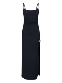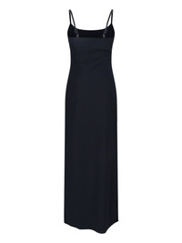 COPERNI GARTER MAXI DRESS IN BLACK COTTON BLEND WITH THIN STRAPS, ROUND NECKLINE, SIDE ZIP CLOSURE, MAXI SIDE SPLIT, ADJUSTABLE LEATHER BELT, SILVER METAL LOGO DETAIL, STRAIGHT HEM. PRODUCT INFO PRODUCT CODE COPR166F2043BLK COMPOSITION: 51% COTTON, 44% POLYESTER, 6% ELASTANE SIZE AND FIT: REGULAR FIT MADE IN: BULGARIA - TRIMS: 100% METAL