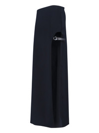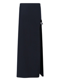 COPERNI MAXI SKIRT IN BLACK RECYCLED FABRIC WITH MID WAIST, SIDE ZIP CLOSURE, MAXI SIDE SPLIT, SIDE GARTER STRAP DETAIL, ADJUSTABLE STRAP, SILVER LOGO BUCKLE, STRAIGHT HEM. PRODUCT INFO PRODUCT CODE COPJ100F2043BLK COMPOSITION: 100% RECYCLED POLYESTER SIZE AND FIT: REGULAR FIT MADE IN: BULGARIA - THIS PRODUCT IS MADE FROM RECYCLED MATERIALS