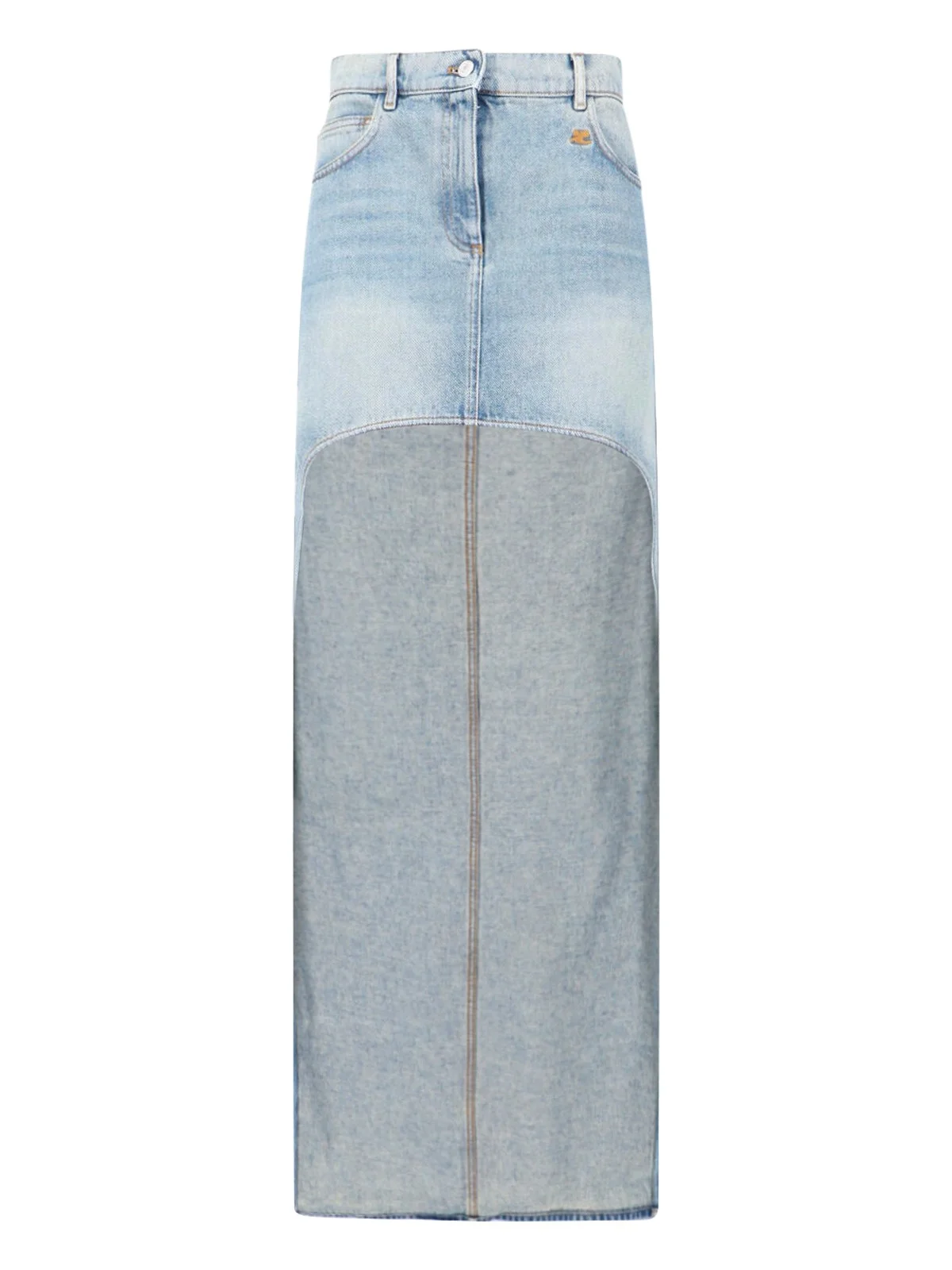- ASYMMETRICAL MAXI SKIRT IN BLUE COURREGES DENIM - MID-RISE - BUTTON AND ZIP CLOSURE - FIVE-POCKET DESIGN - BELT LOOPS - EMBROIDERED LOGO ON THE FRONT - ASYMMETRICAL HEM PRODUCT INFO PRODUCT CODE 126DJU346DE00587055 COMPOSITION: 100% COTTON SIZE AND FIT: REGULAR FIT MADE IN: FRANCE