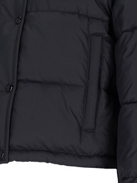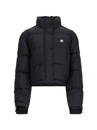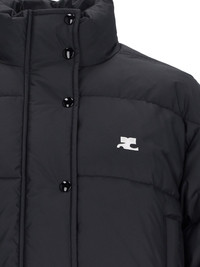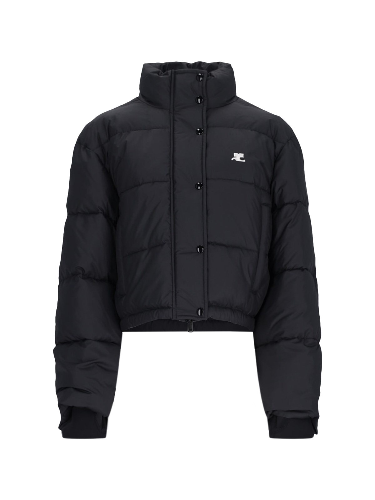 COURREGES LOGO CROP DOWN JACKET IN BLACK FABRIC WITH QUILTED AND PADDED DESIGN, HIGH NECK, BUTTON CLOSURE AND DOUBLE HIDDEN ZIP, TWO SIDE ZIP POCKETS, CONTRAST "AC" LOGO EMBROIDERY FRONT AND BACK, DRAWSTRING ON THE BOTTOM, STRAIGHT HEM. PRODUCT INFO PRODUCT CODE 323CMA106PL01129999 COMPOSITION: 100% POLYESTER SIZE AND FIT: REGULAR FIT MADE IN: LITHUANIA