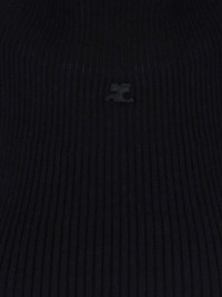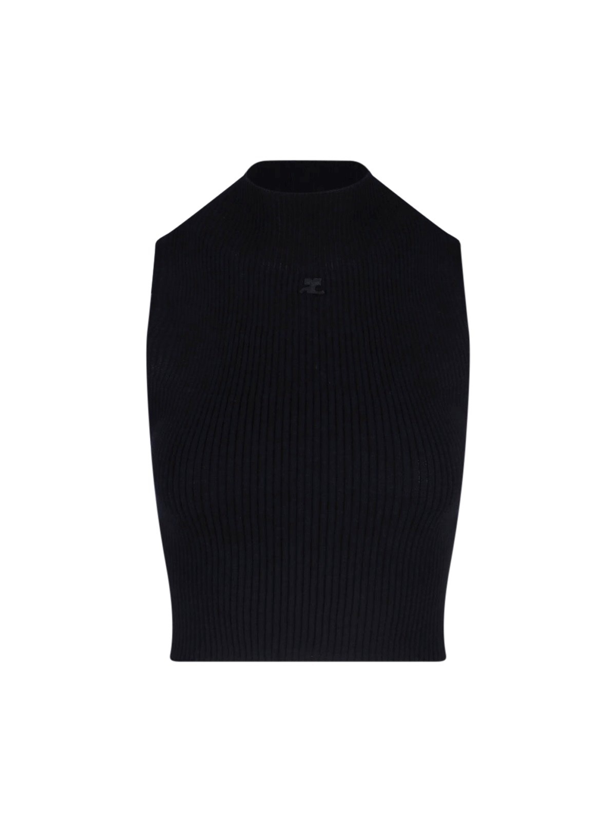 COURREGES LOGO CROP TOP IN BLACK MERINO COTTON AND WOOL WITH RIBBED PATTERN, TONE-ON-TONE LOGO PATCH ON THE CHEST, STRAIGHT HEM. PRODUCT INFO PRODUCT CODE 225MTO402FI00499999 COMPOSITION: 80% COTTON, 20% MERINO WOOL SIZE AND FIT: REGULAR FIT MADE IN: ITALY