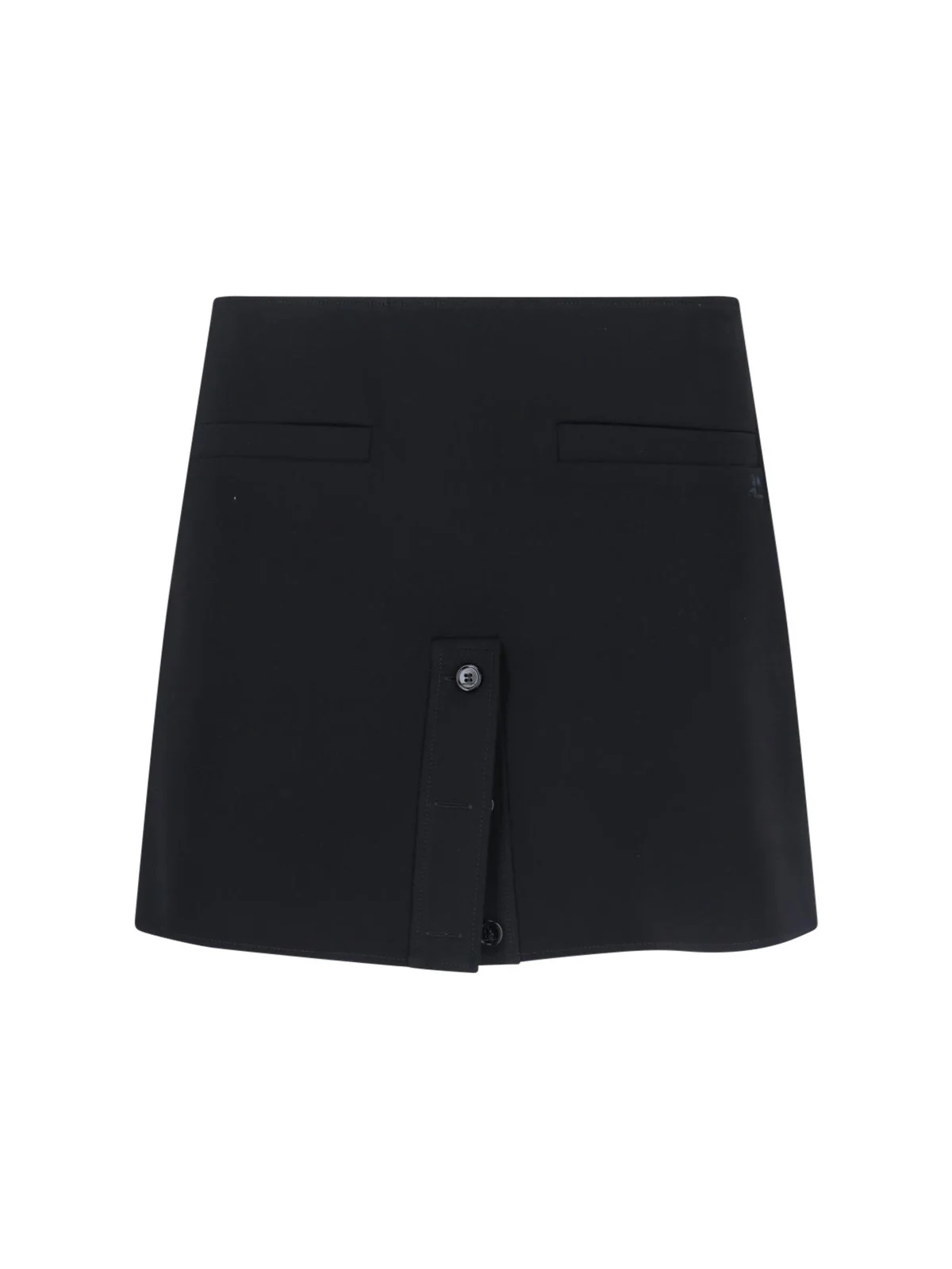 COURREGES LOGO MINI SKIRT IN BLACK FABRIC WITH MID WAIST, SIDE ZIP CLOSURE, TWO FLAT FRONT POCKETS, TONE-ON-TONE EMBROIDERED LOGO ON THE FRONT, FRONT BUTTON CLOSURE, AND STRAIGHT HEM. PRODUCT INFO PRODUCT CODE 126CJU330PL01599999 COMPOSITION: 89% POLYESTER, 11% POLYURETHANE SIZE AND FIT: REGULAR FIT MADE IN: PORTUGAL