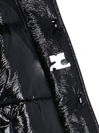 BLACK COURREGES SHORT VINYL DOWN JACKET WITH QUILTED DESIGN, HIGH NECK, ZIP AND BUTTON CLOSURE, TWO SIDE ZIP POCKETS, WHITE LOGO PATCH APPLIQUE ON THE FRONT, ELASTICATED CUFFS, DRAWSTRING HEM, STRAIGHT HEM. PRODUCT INFO PRODUCT CODE 323CMA106VY00169999 COMPOSITION: 82% VISCOSE, 15% POLYUTERAN, 3% ELASTANE SIZE AND FIT: REGULAR MADE IN: LETTONIA