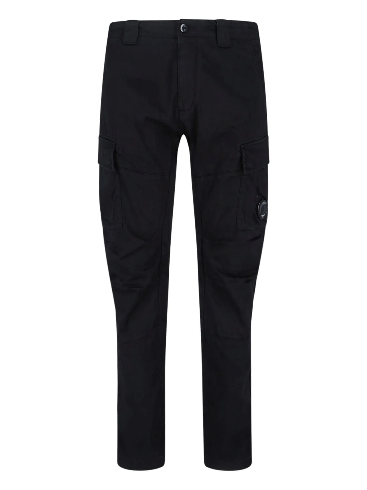 C.P. COMPANY "LENS" BLACK STRETCH COTTON CARGO PANTS WITH MID WAIST, BUTTON AND ZIP CLOSURE, BELT LOOPS, TWO SLANTED SIDE POCKETS, TWO SIDE CARGO POCKETS, LENS DETAIL, STRAIGHT LEG. PRODUCT INFO PRODUCT CODE RSCMPA743A005694G999 COMPOSITION: 98% COTTON, 2% ELASTANE SIZE AND FIT: REGULAR FIT MADE IN: TUNISIA