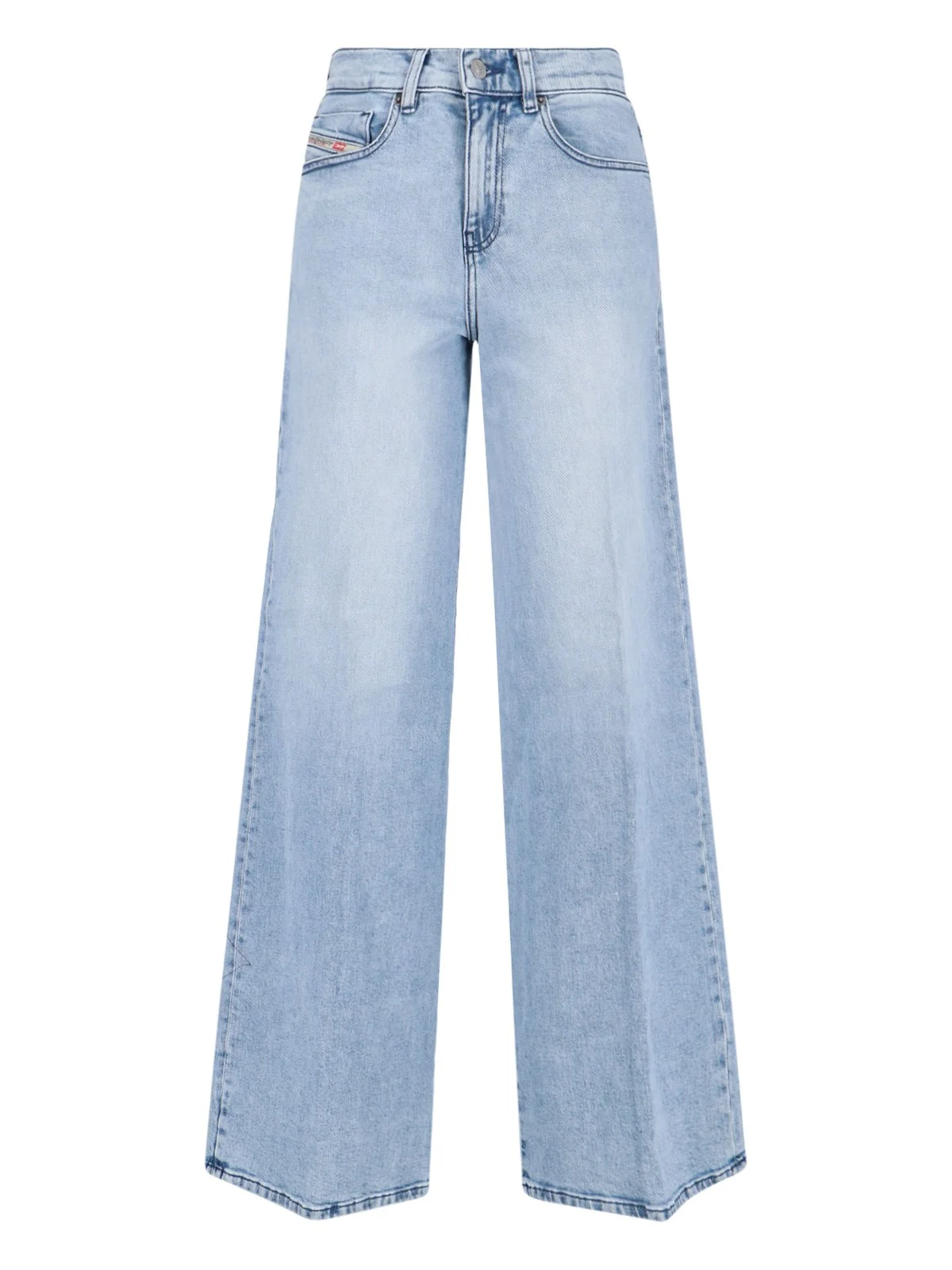 DIESEL '1996 D-SIRE' JEANS IN LIGHT BLUE COTTON DENIM WITH MID WAIST, ZIP AND BUTTON CLOSURE, FIVE POCKETS, LOGO LABEL ON THE BACK, WIDE LEG. PRODUCT INFO PRODUCT CODE A03624 0ADBJ01 COMPOSITION: 99% COTTON, 1% ELASTANE SIZE AND FIT: SOFT FIT MADE IN: EGYPT - PRODUCT MADE FROM RECYCLED MATERIALS
