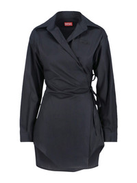 DIESEL 'DELPHIDEN' BLACK COTTON MIDI DRESS WITH ASYMMETRIC LACE-UP CLOSURE, TONAL LOGO EMBROIDERY ON THE FRONT, BUTTON CUFFS, STRAIGHT HEM. PRODUCT INFO PRODUCT CODE A20063 0EPCL9XX COMPOSITION: 95% COTTON, 5% ELASTANE SIZE AND FIT: REGULAR FIT MADE IN: TURKEY
