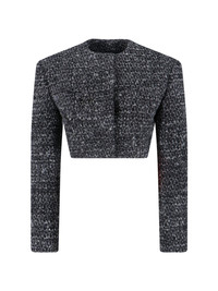 DIESEL 'G-CROP-G' BLAZER IN BLACK TWEED FABRIC WITH BUTTON CLOSURE, LONG SLEEVES, STRAIGHT HEM. PRODUCT INFO PRODUCT CODE A22043 0EPCS9XXA COMPOSITION: 38% POLYESTER, 36% ACRYLIC, 14% COTTON, 11% WOOL, 1% OTHER FIBERS SIZE AND FIT: REGULAR FIT MADE IN: ITALY