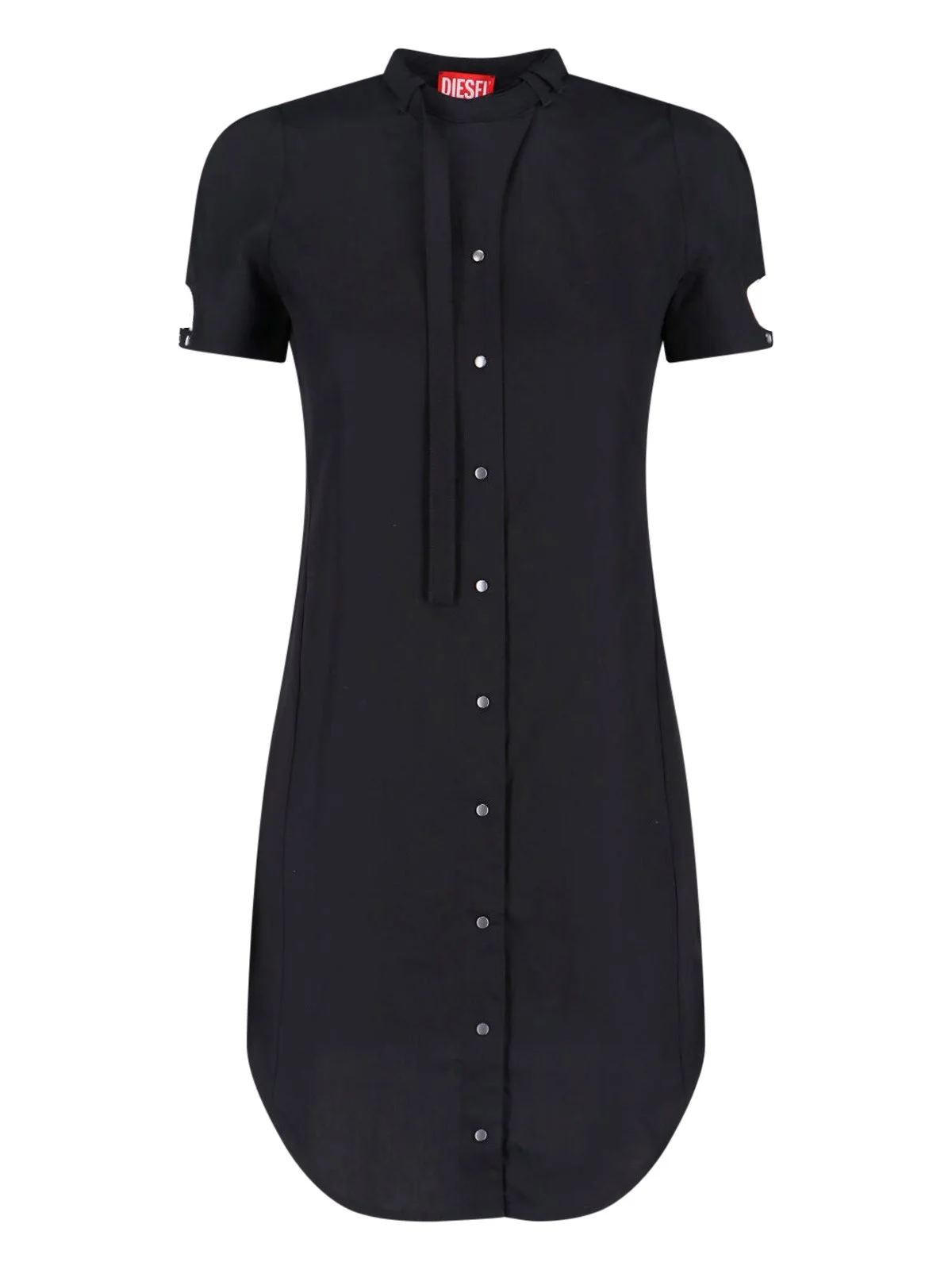 DIESEL BLACK LYOCELL MIDI SHIRT DRESS WITH ROUND NECKLINE, BUTTON CLOSURE, ADJUSTABLE LACE AT THE FRONT, CUT-OUT DETAIL ON THE SLEEVES, OVAL D LOGO AT THE BACK, AND CURVED HEM. PRODUCT INFO PRODUCT CODE A23674 0EGET9XX COMPOSITION: 100% LYOCELL SIZE AND FIT: REGULAR FIT MADE IN: CHINA