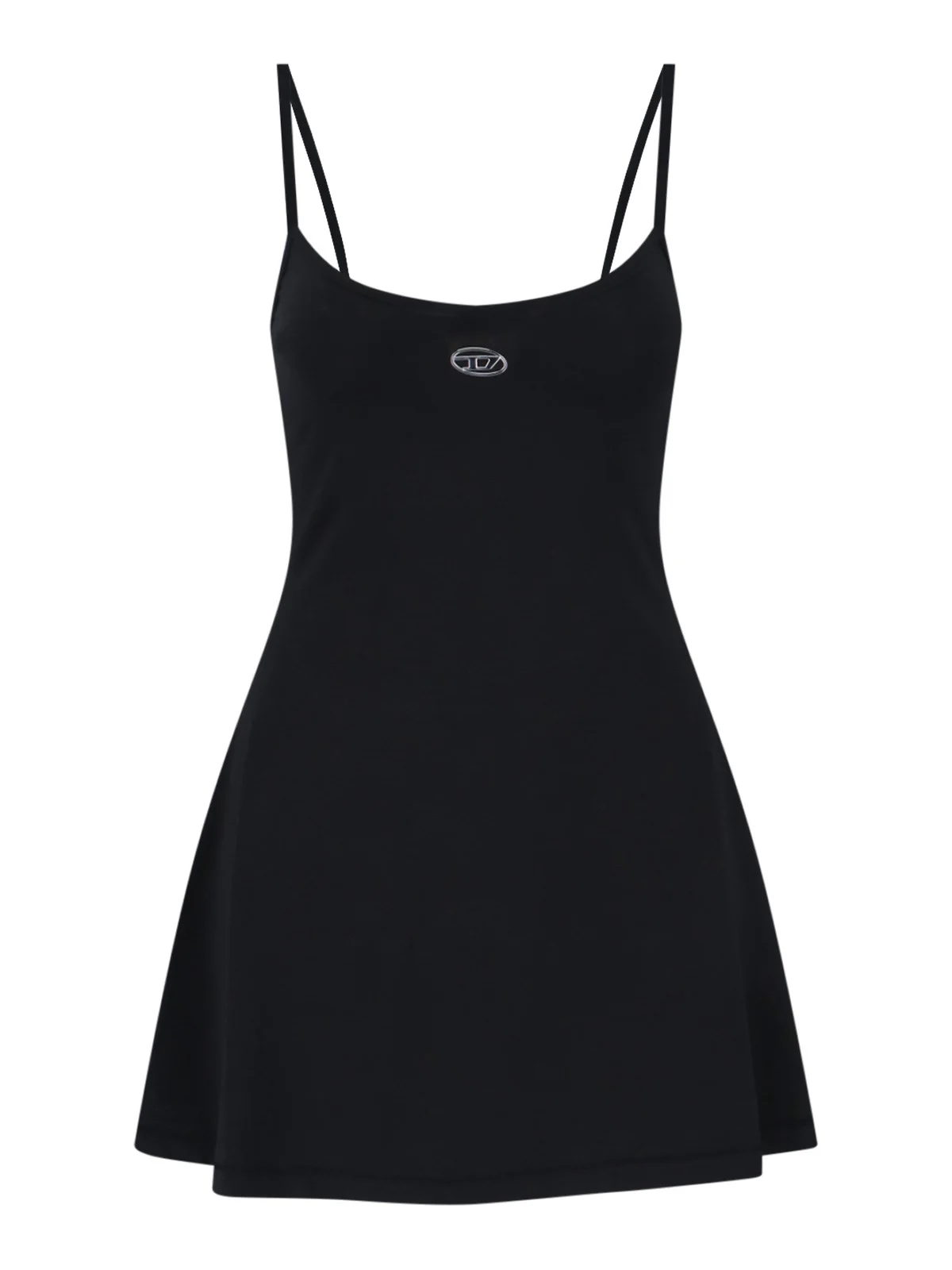 DIESEL 'OVAL D' BLACK COTTON MINI DRESS WITH THIN STRAPS, 'OVAL D' LOGO DETAIL ON THE FRONT, STRAIGHT HEM. PRODUCT INFO PRODUCT CODE A19918 0AHQH900 COMPOSITION: 95% COTTON, 5% ELASTANE SIZE AND FIT: REGULAR FIT MADE IN: BULGARIA