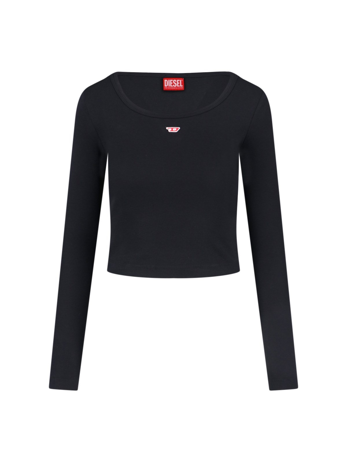DIESEL 'T-BALLET-D' CROP TOP IN BLACK ORGANIC COTTON WITH RIBBED PATTERN, CREW NECK, LONG SLEEVES, LOGO EMBROIDERY ON THE CHEST, STRAIGHT HEM. PRODUCT INFO PRODUCT CODE A05106 0EJAI9XX COMPOSITION: 94% COTTON, 6% ELASTANE SIZE AND FIT: SLIM FIT MADE IN: CHINA - PRODUCT MADE FROM ORGANIC RAW MATERIALS