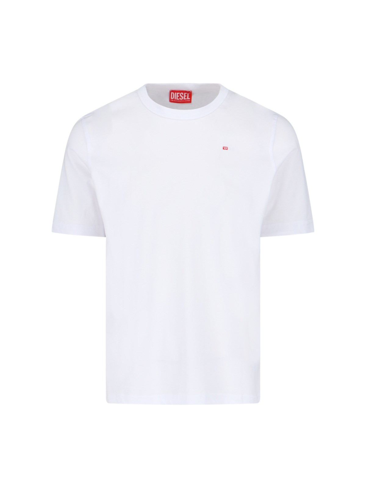 DIESEL 'T-JUST-MICRODIV' WHITE COTTON JERSEY CREW NECK T-SHIRT WITH SHORT SLEEVES, RED DENIM DIVISION LOGO EMBROIDERY ON THE CHEST, RIBBED TRIMS, STRAIGHT HEM. PRODUCT INFO PRODUCT CODE A14931 0NIAX100 COMPOSITION: 100% COTTON SIZE AND FIT: REGULAR FIT MADE IN: CHINA