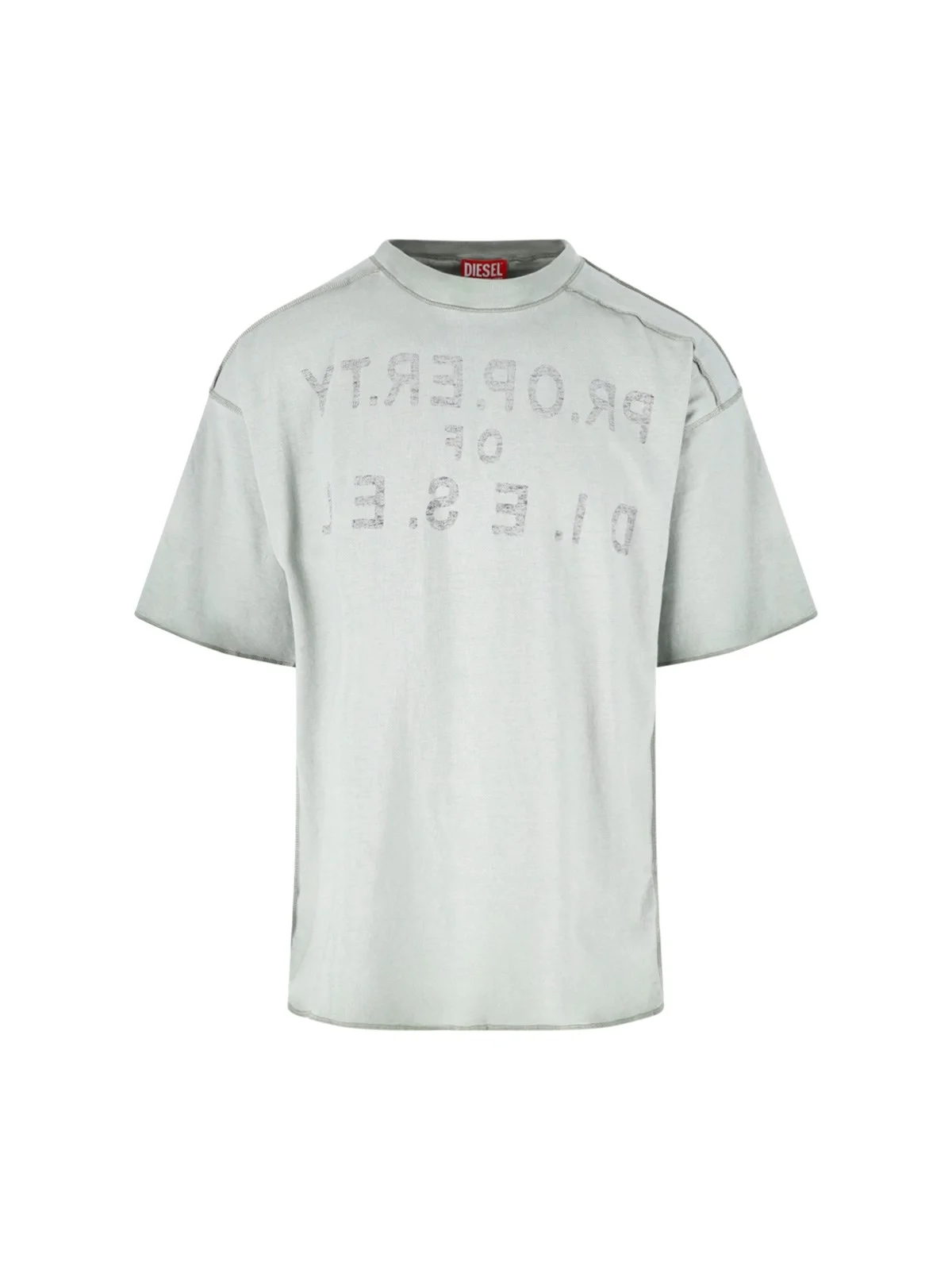 - T-SHIRT “T-LOOK” DIESEL IN ORGANIC GRAY COTTON - RIBBED CREW NECK - DROPPED SHOULDERS - FRONT PRINT - RAISED FINISHES - BACK PRINT - EMBROIDERED “D” LOGO DETAIL ON THE BACK PRODUCT INFO PRODUCT CODE A20226 0QMBT9EC COMPOSITION: 100% COTTON SIZE AND FIT: LOOSE FIT MADE IN: INDIA - PRODUCT MADE WITH ORGANIC MATERIALS