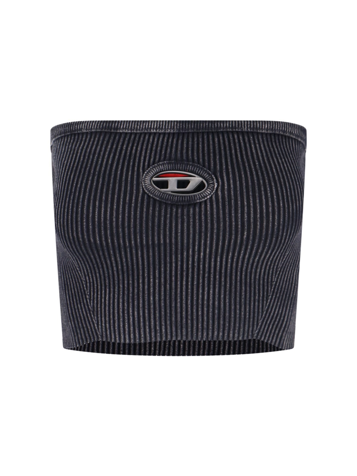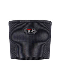 DIESEL M-CLARKSVILLEX-C TOP IN BLACK COTTON BLEND WITH USURED WASH, ROUND NECKLINE, RIBBED PATTERN, OVAL-D LOGO ON THE FRONT, CUT-OUT DETAIL, STRAIGHT HEM. PRODUCT INFO PRODUCT CODE A14813 0AKBQ900 COMPOSITION: 82% COTTON, 16% POLYAMIDE, 2% ELASTANE SIZE AND FIT: SLIM FIT MADE IN: ITALY - PRODUCT MADE FROM RECYCLED MATERIALS