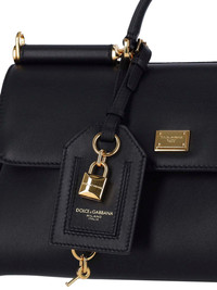 DOLCE & GABBANA 'MY SICILY' BLACK CALF LEATHER HANDBAG WITH HANDLE, REMOVABLE GOLD METAL PADLOCK CHARM DETAIL, ADJUSTABLE AND REMOVABLE SHOULDER STRAP, INTERLOCKING FLAP CLOSURE, GOLD METAL LOGO TAG DETAIL, MAXI BACK ZIP POCKET, LOGO PATCH DETAIL, INNER ZIP POCKET, MAIN INNER COMPARTMENT. PRODUCT INFO PRODUCT CODE BB7782 B732180999 COMPOSITION: 95% CALF LEATHER, 5% PVC SIZE AND FIT: H 20 X W 30 X D 13 CM MADE IN: ITALY