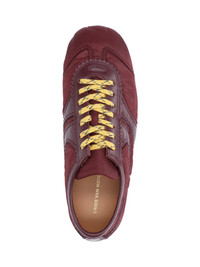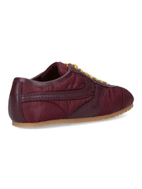 DRIES VAN NOTEN BURGUNDY LEATHER SNEAKERS WITH TONE-ON-TONE CALF LEATHER FINISH, ROUND TOE, LACES, LOGO EMBOSSED ON TONGUE, RUBBER SOLE. PRODUCT INFO PRODUCT CODE 011723 601359 COMPOSITION: 100% TEXTILE SIZE AND FIT: - SOLE: 100% RUBBER MADE IN: ITALY