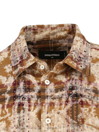 DSQUARED2 'BLEACHED SPARKLY CHECK' SHIRT IN LIGHT BROWN COTTON WITH BLACK DETAIL CHECK PATTERN, ALL-OVER RHINESTONE AND STUD APPLIQUE, CLASSIC COLLAR, BUTTON CLOSURE, BUTTON CUFFS, CURVED HEM. PRODUCT INFO PRODUCT CODE S71DM0806 D35356001F COMPOSITION: 100% COTTON SIZE AND FIT: REGULAR FIT MADE IN: ITALY