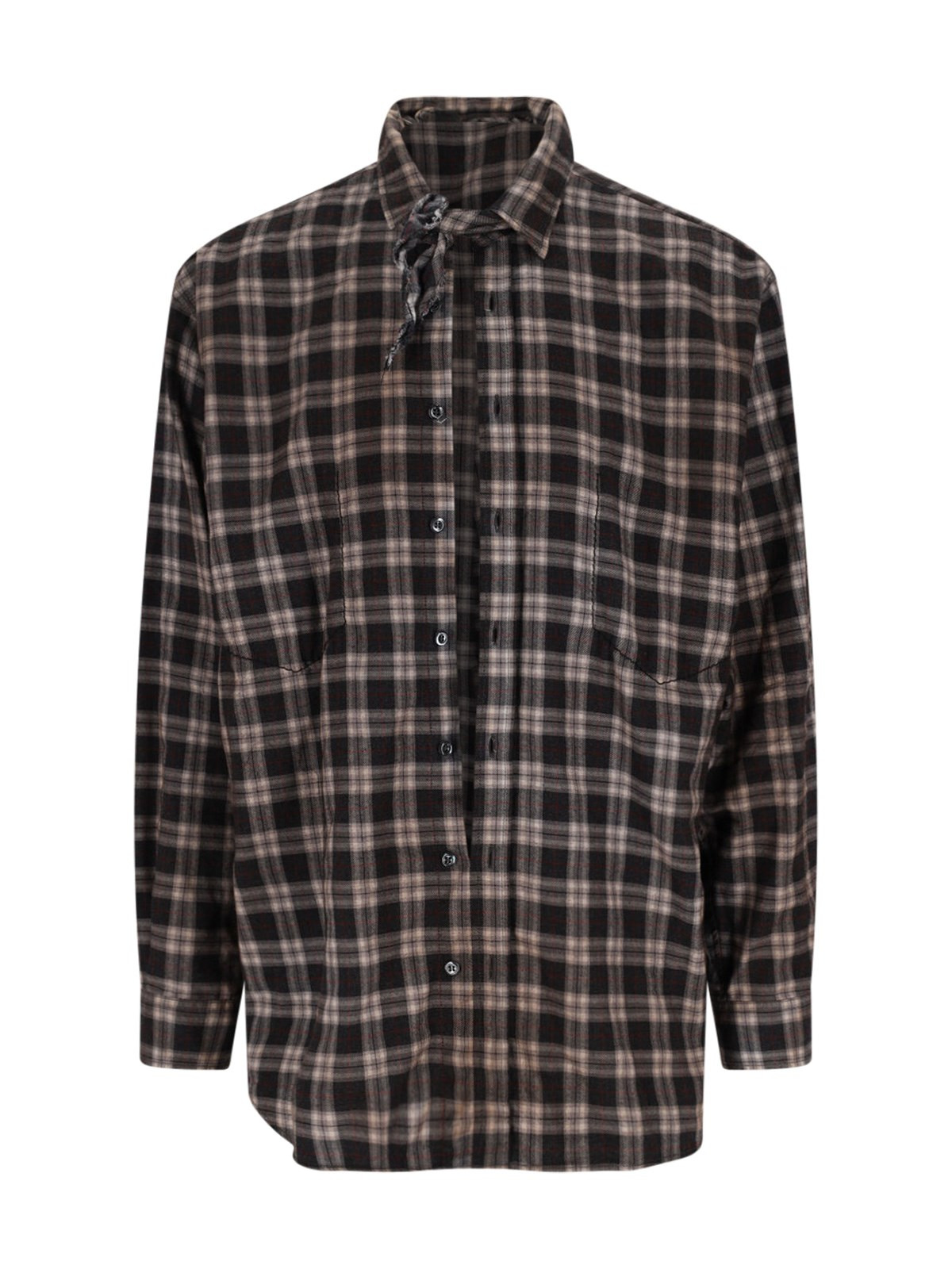 DSQUARED2 'DEAN VINTAGE' BROWN COTTON SHIRT WITH CONTRAST CHECK PATTERN, CLASSIC COLLAR, ADJUSTABLE BOW DETAIL AT THE FRONT, BUTTON CLOSURE, TWO FRONT POCKETS, TWO FIXED BUTTON DETAILS ON THE HEM, CURVED HEM. PRODUCT INFO PRODUCT CODE S71DM0809 D35307002F COMPOSITION: 100% COTTON SIZE AND FIT: SOFT FIT MADE IN: ITALY