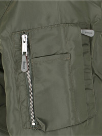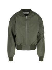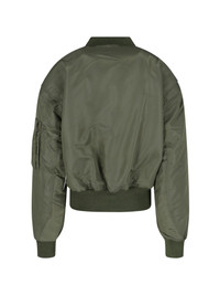 ENTIRE STUDIOS "BROAD" GREEN NYLON ZIP BOMBER JACKET WITH CREW NECK, STRUCTURED SHOULDERS, ZIP CLOSURE, ZIPPER DETAIL WITH EMBOSSED LOGO, TWO SIDE BUTTON FLAP POCKETS, A ZIP PATCH POCKET ON THE SLEEVE, DETAIL A FLAT PATCH POCKET, RIBBED TRIMS, STRAIGHT HEM. PRODUCT INFO PRODUCT CODE ESU S25 1007 KHKHAKI COMPOSITION: 100% NYLON SIZE AND FIT: SOFT FIT MADE IN: CHINA