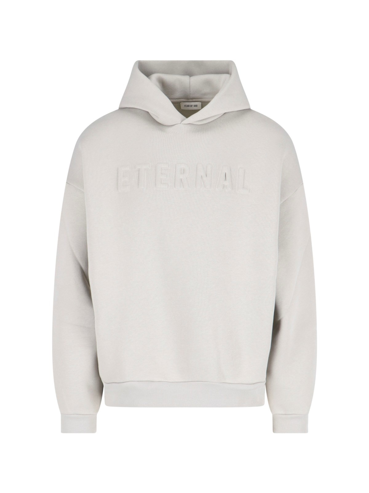 FEAR OF GOD ETERNAL HOODIE IN GRAY COTTON BLEND WITH TONE-ON-TONE EMBROIDERED LOGO, TWO SIDE POCKETS, LOGO LABEL ON THE BACK, RIBBED TRIM, AND STRAIGHT HEM. PRODUCT INFO PRODUCT CODE FGE250 51211FLC085 COMPOSITION: 69% COTTON, 31% POLYESTER SIZE AND FIT: SOFT FIT MADE IN: PORTUGAL