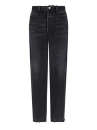 FEAR OF GOD STRAIGHT JEANS IN BLACK DENIM WITH DISTRESSED WASH, MID WAIST, BELT LOOPS, BUTTON CLOSURE, LOGO LABEL DETAIL, FIVE POCKET DESIGN, DESTROYED DETAILS ON THE HEM, STRAIGHT LEG. PRODUCT INFO PRODUCT CODE FGE240 408DNM055 COMPOSITION: 100% COTTON SIZE AND FIT: REGULAR FIT MADE IN: JAPAN - "DENIM" SIZE SCALE