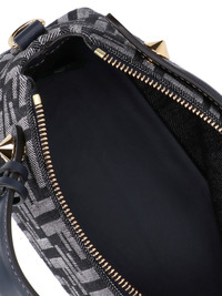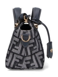 FENDI "BY THE WAY" MINI BAG IN BLUE FABRIC WITH "FF" LOGO PATTERN, TWO TOP HANDLES, REMOVABLE RING KEYRING DETAIL, ADJUSTABLE AND REMOVABLE SHOULDER STRAP, ZIP CLOSURE, KNOTTED MAXI ZIPPER DETAIL, A SINGLE INNER COMPARTMENT. PRODUCT INFO PRODUCT CODE 8BS098 AUT4F1UJ5 COMPOSITION: 100% POLYESTER, 40% COTTON, 4% ELASTANE SIZE AND FIT: H 12 X W 20 X D 9 CM MADE IN: ITALY - TRIMS: 100% CALF LEATHER
