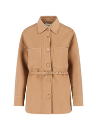 FENDI BROWN CASHMERE SHIRT JACKET WITH CLASSIC COLLAR, BUTTON CLOSURE, DROPPED SHOULDERS, TWO FRONT PATCH POCKETS, TONE-ON-TONE EMBROIDERED LOGO ON THE FRONT, REMOVABLE AND ADJUSTABLE STRAP DETAIL, BUTTON CUFFS, STRAIGHT HEM. PRODUCT INFO PRODUCT CODE FJ7235 W18F0QU5 COMPOSITION: 100% CASHMERE SIZE AND FIT: REGULAR FIT MADE IN: ITALY