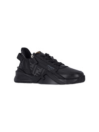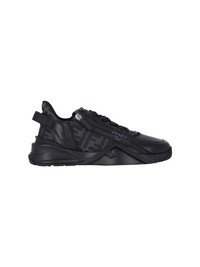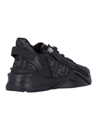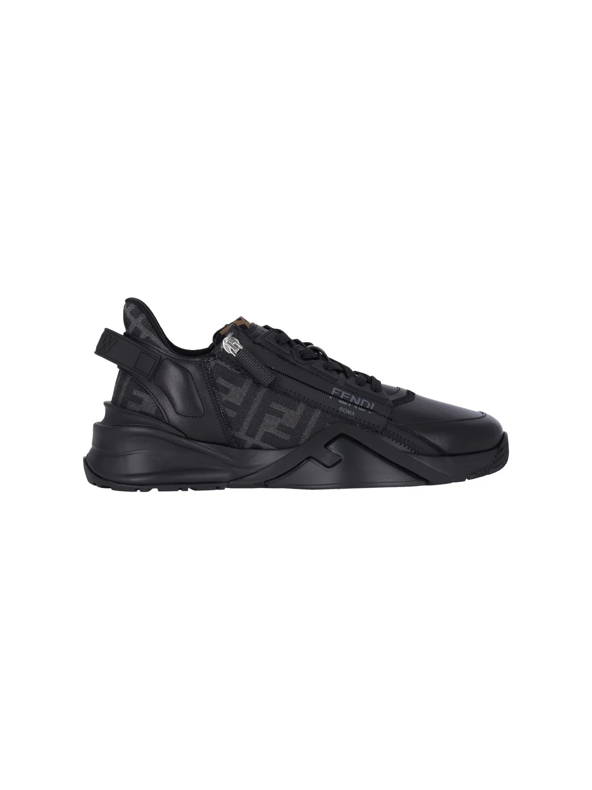 FENDI 'FENDI FLOW' SNEAKERS, LEATHER, FABRIC DETAILING, BLACK COLOR, ROUND TOE, LACE-UP CLOSURE, EMBOSSED LOGO TAB, SIDE ZIPPER, BLACK AND GRAY FF PATTERN SIDE AND BACK, TAB BACK TAB, EMBOSSED LOGO DETAIL, AUTUMN WINTER 2022 2023, SHOES, MAN PRODUCT INFO PRODUCT CODE 7E1392 AJZHF1DV5 - 100% LEATHER - DETAILS: 65% POLYAMIDE, 35% COTTON - SOLE: 100% RUBBER - MADE IN ITALY - 7E1392 AJZH-F1DV5