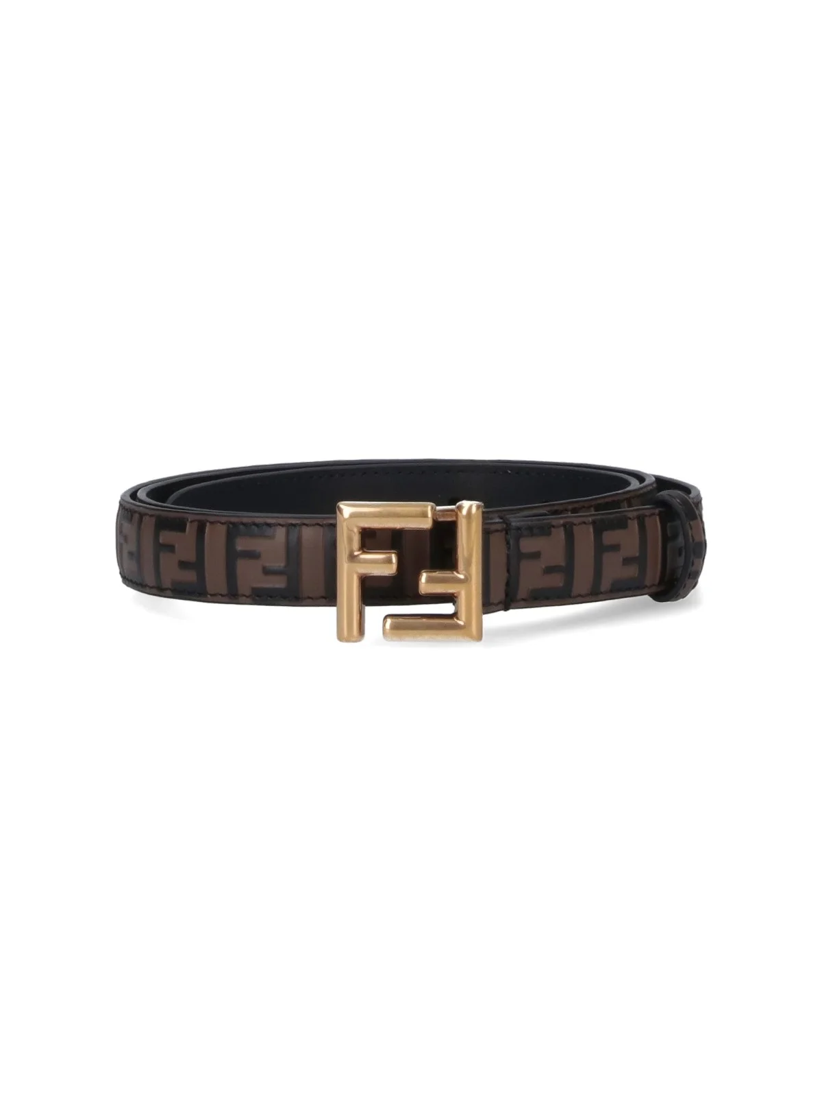 FENDI 'FF' LOGO BELT IN BROWN LEATHER WITH ALL-AROUND BLACK LOGO PRINT PATTERN, GOLD METAL LOGO BUCKLE AT THE FRONT, ADJUSTABLE. PRODUCT INFO PRODUCT CODE 8C0648 AQ1JF1N1Y COMPOSITION: 100% CALF LEATHER SIZE AND FIT: HEIGHT 2 CM MADE IN: ITALY