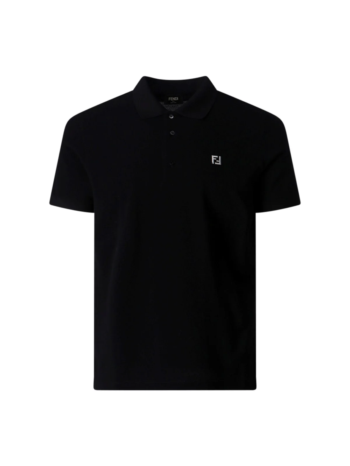 FENDI LOGO POLO SHIRT IN BLACK COTTON WITH CLASSIC COLLAR, BUTTON CLOSURE, SHORT SLEEVES, EMBROIDERED "FF" LOGO ON THE FRONT, AND STRAIGHT HEM. PRODUCT INFO PRODUCT CODE FY0985 AUA5F0QA1 COMPOSITION: 100% COTTON SIZE AND FIT: REGULAR FIT MADE IN: ITALY