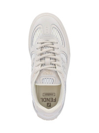 FENDI MATCH PLATFORM SNEAKERS IN CREAM CALF LEATHER WITH ROUND TOE, LACE-UP CLOSURE, METAL LOGO ON THE TONGUE, SIDE MESH INSERTS, SIDE "FF" LOGO PATCH, EMBOSSED LOGO ON THE BACK TAB, RUBBER PLATFORM SOLE, EMBOSSED LOGO PATCH DETAIL ON THE BACK. PRODUCT INFO PRODUCT CODE 8E8721 AU32F1SZJ COMPOSITION: 100% CALF LEATHER SIZE AND FIT: HEEL 5 CM MADE IN: ITALY - SOLE: 100% RUBBER