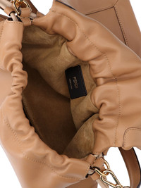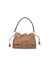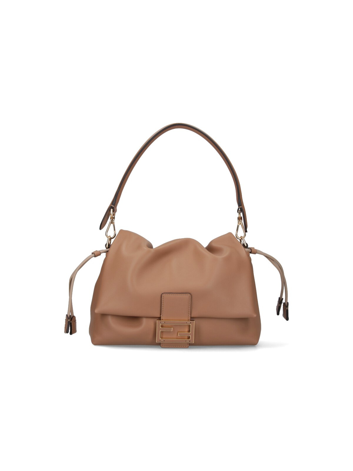 FENDI MEDIUM "MAMMA BAGUETTE" HANDBAG IN BEIGE LAMB NAPPA LEATHER WITH REMOVABLE HANDLE, REMOVABLE SHOULDER STRAP, FLAP CLOSURE, MAGNETIC STRAP AND DRAWSTRING, GOLD METAL "FF" LOGO BUCKLE DETAIL ON THE FRONT, A SINGLE INNER COMPARTMENT. PRODUCT INFO PRODUCT CODE 8BR833 AQ0DF19P8 COMPOSITION: 100% LAMBSKIN SIZE AND FIT: H 18 X W 26.5 X D 8.5 CM MADE IN: ITALY - STRAP SPAN: 45 - 101 CM