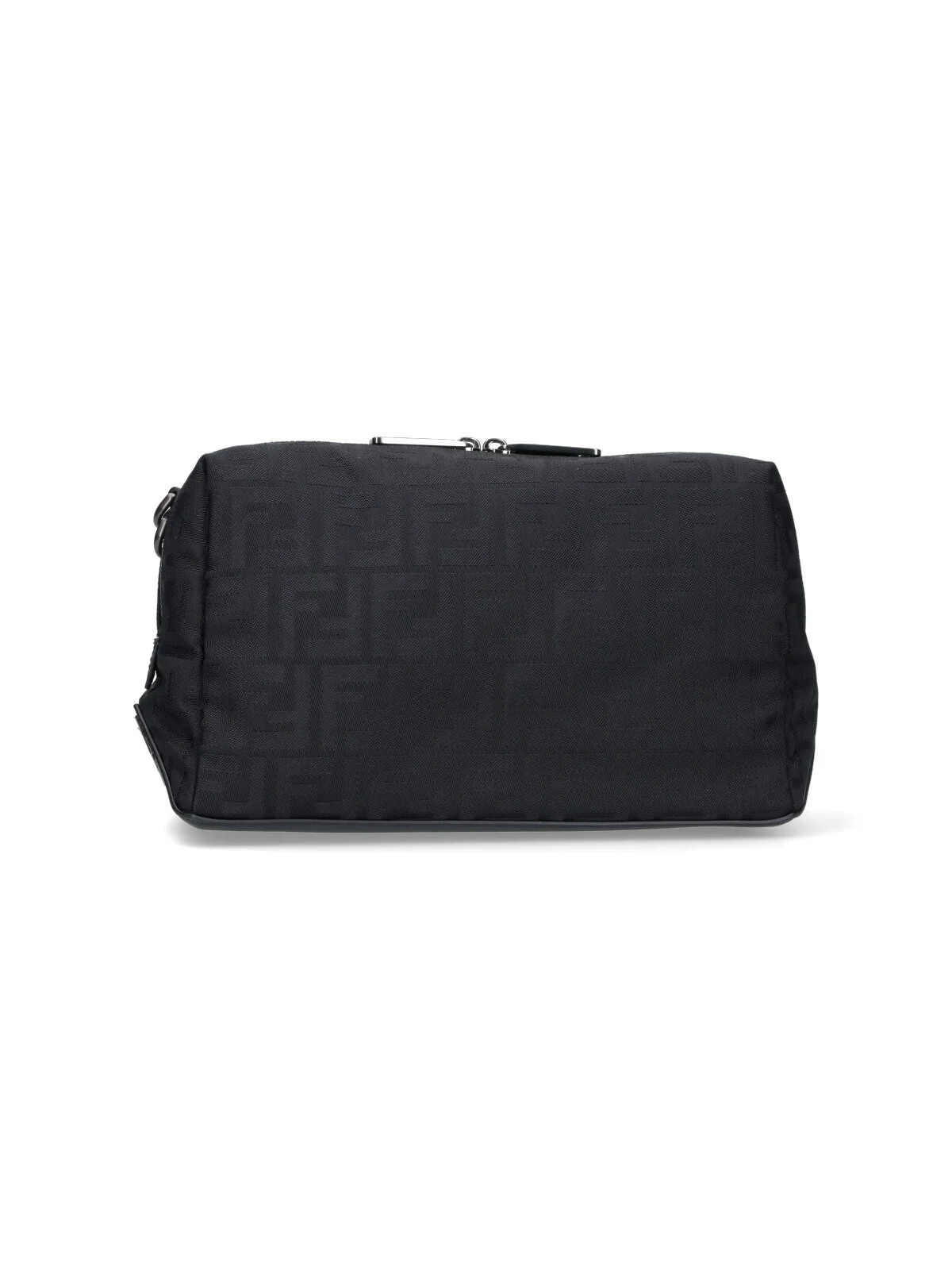 FENDI "LUI" MEDIUM SHOULDER BAG IN BLACK FABRIC WITH ALL-OVER "FF" PATTERN, REMOVABLE TOP HANDLE, REMOVABLE AND ADJUSTABLE SHOULDER STRAP, DOUBLE ZIP CLOSURE, SIDE SILVER METAL "FF" LOGO DETAIL, INNER FLAT POCKET, MAIN INNER COMPARTMENT. PRODUCT INFO PRODUCT CODE 7VA672 AVC6F0SAJ COMPOSITION: 100% POLYAMIDE SIZE AND FIT: H 19 X W 28 X D 11 CM MADE IN: ITALY - HANDLE DROP: 48 CM - STRAP SPAN: 89-109 CM