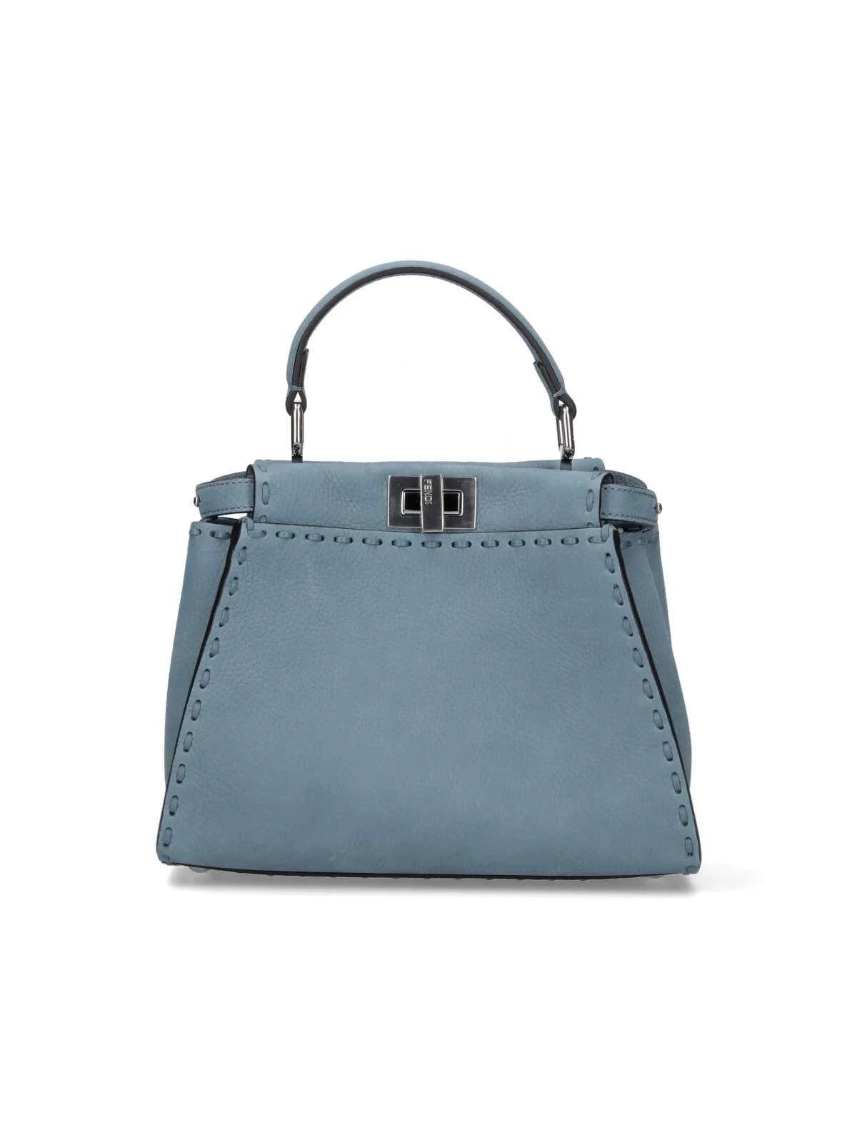 FENDI MINI PEEKABOO BAG IN BLUE HAMMERED CALF LEATHER WITH TOP HANDLE, FRONT AND BACK TURN LOCK, ADJUSTABLE AND REMOVABLE SHOULDER STRAP, GOLD METAL DETAILS, TWO MAIN INNER COMPARTMENTS, AND AN INNER ZIP POCKET. PRODUCT INFO PRODUCT CODE 8BN244 AVQQF1USY COMPOSITION: 100% CALF LEATHER SIZE AND FIT: H 18 X W 23 X D 11 CM MADE IN: ITALY -STRAP SPAN: 52.5-117 CM