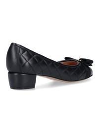 SALVATORE FERRAGAMO 'VARA' BOW PUMP, BLACK QUILTED LEATHER, GROSGRAIN VARA BOW, ROUND PATENT LEATHER TOE, SQUARE HEEL. PRODUCT INFO PRODUCT CODE 672114001 - 100% LEATHER - 3 CM HEEL - MADE IN ITALY - 672114-001 MADE IN: ITALY