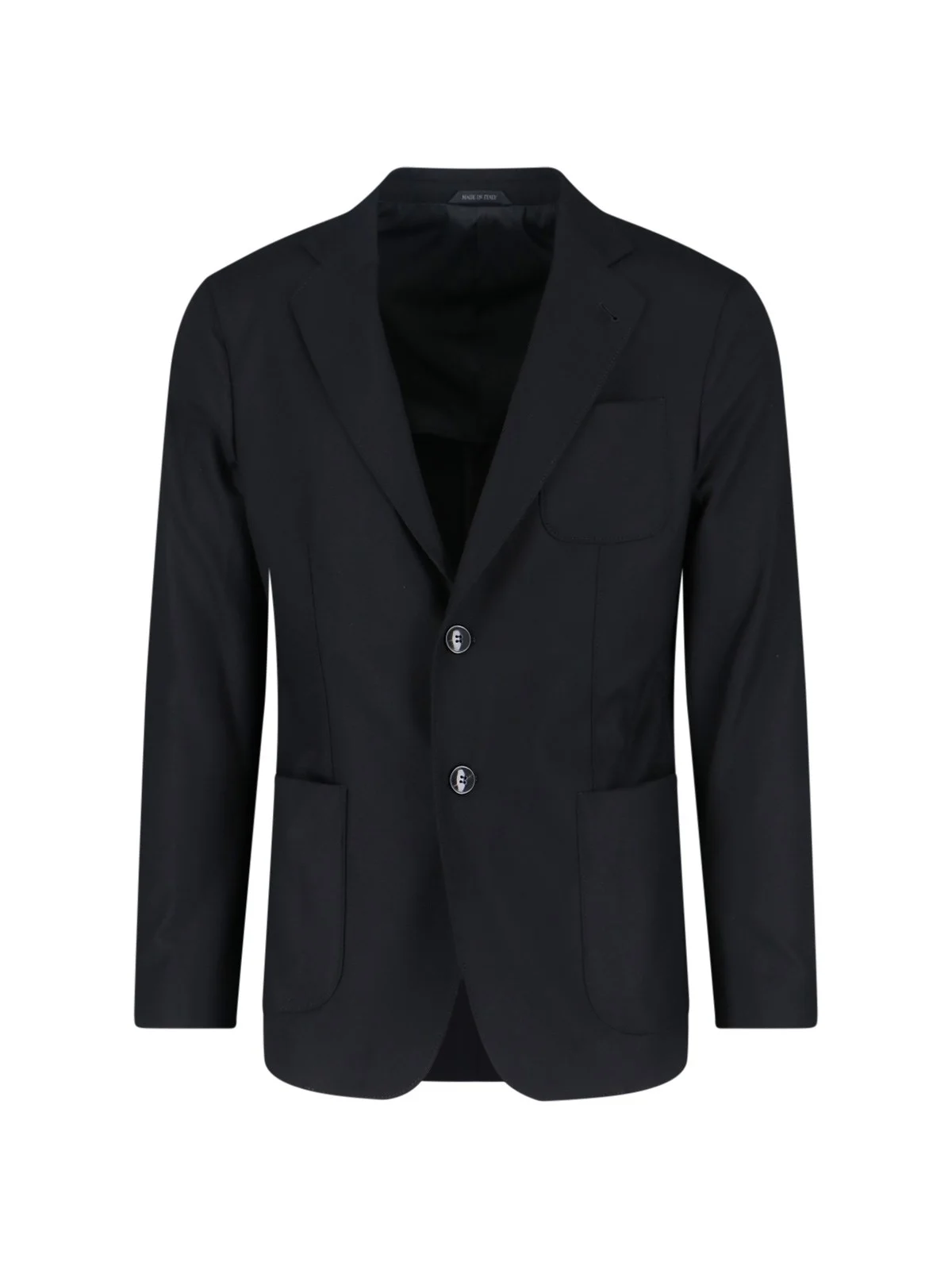 GIORGIO ARMANI 'UPTON' SINGLE-BREASTED JACKET IN BLACK CASHMERE WITH CLASSIC LAPELS, BUTTON CLOSURE, CHEST PATCH POCKET, TWO FRONT PATCH POCKETS, BUTTON CUFFS, STRAIGHT HEM. PRODUCT INFO PRODUCT CODE GM000248 TE10115UC003 COMPOSITION: 96% CASHMERE, 4% ELASTANE SIZE AND FIT: REGULAR FIT MADE IN: ITALY