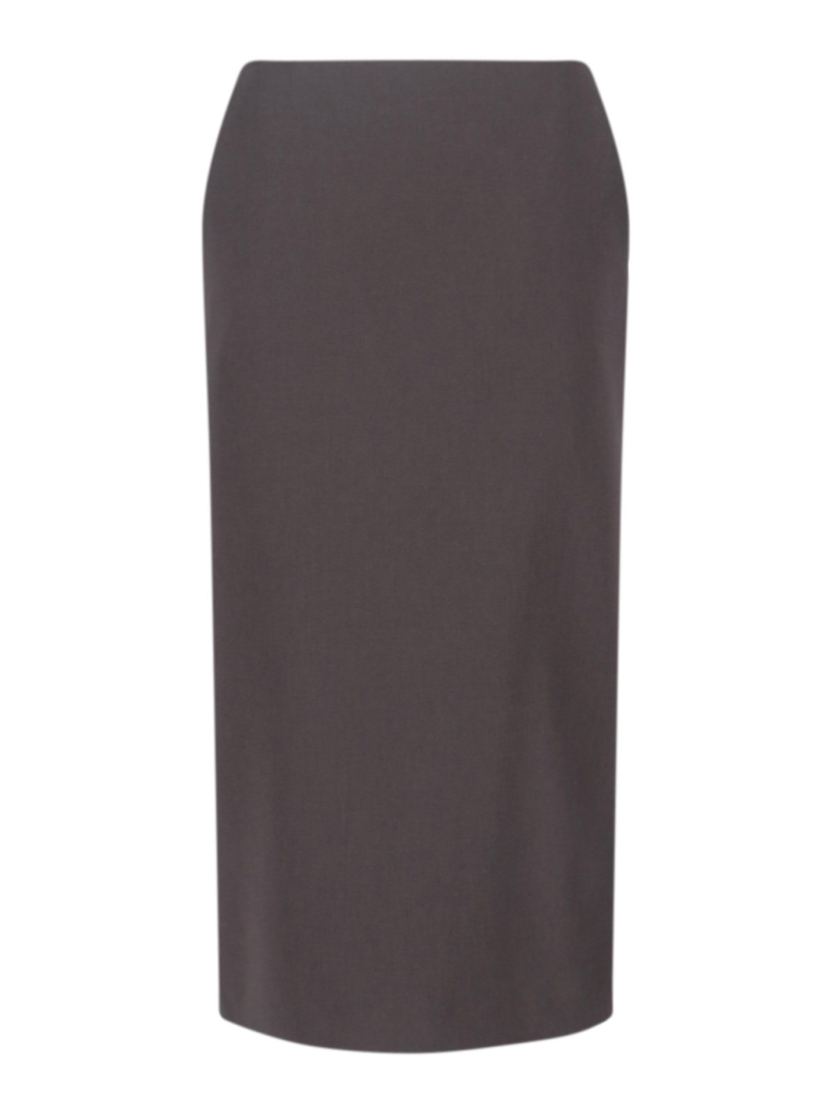 GIORGIO ARMANI BROWN VIRGIN WOOL MIDI SKIRT WITH MID WAIST, BACK ZIP CLOSURE, TWO SIDE WELT POCKETS, BACK SLIT, STRAIGHT HEM. PRODUCT INFO PRODUCT CODE GW001889 TE14246U8130 COMPOSITION: 96% VIRGIN WOOL, 4% ELASTANE SIZE AND FIT: REGULAR FIT MADE IN: ITALY