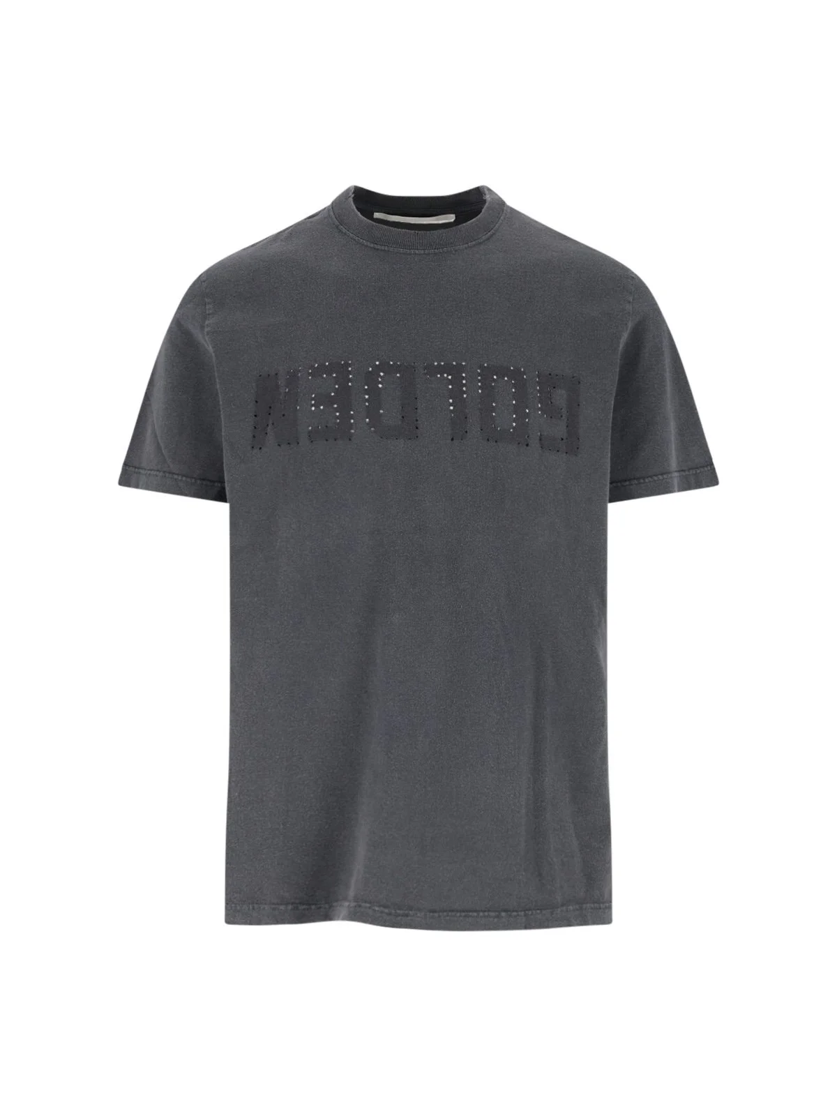 GOLDEN GOOSE DELUXE BRAND GREY COTTON T-SHIRT WITH RIBBED CREW NECK, SHORT SLEEVES, ALL-OVER DISTRESSED DETAILS, FRONT TONAL LOGO, REMOVABLE WHITE 'G' STAMP DETAIL, GOLD STARS AT THE BACK AND STRAIGHT HEM. PRODUCT INFO PRODUCT CODE GMP01220 P00067160318 - 100% COTTON - REGULAR FIT MADE IN: ITALIA