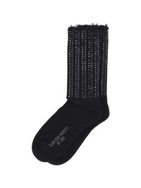 Black socks with distressed details and rhinestones