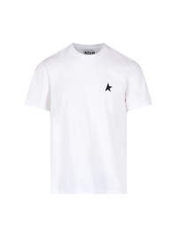 GOLDEN GOOSE 'STAR' T-SHIRT, IN COTTON, WHITE COLOUR, CREW NECK, SHORT SLEEVES, CONTRASTING BLACK STAR DETAIL ON FRONT, RIBBED TRIM, STRAIGHT HEM. PRODUCT INFO PRODUCT CODE GMP01220 P00059310364 - 100% COTTON - REGULAR FIT - MADE IN ITALY - GMP01220 P000593-10364 MADE IN: ITALY