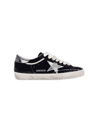 GOLDEN GOOSE "SUPER-STAR LTD" SNEAKERS IN BLACK FABRIC WITH ROUND TOE, CONTRAST LACES, SIDE STAR LOGO, LOGO TAG ON THE FRONT LABEL, CONTRAST FRONT STITCHING, ALL-OVER USURED EFFECT, RUBBER SOLE. PRODUCT INFO PRODUCT CODE GMF01002 F00814381501 COMPOSITION: 28% COTTON, 28% VISCOSE, 16% RAYON, 16% POLYESTER, 12% CALF LEATHER MADE IN: ITALY - SOLE: 100% RUBBER